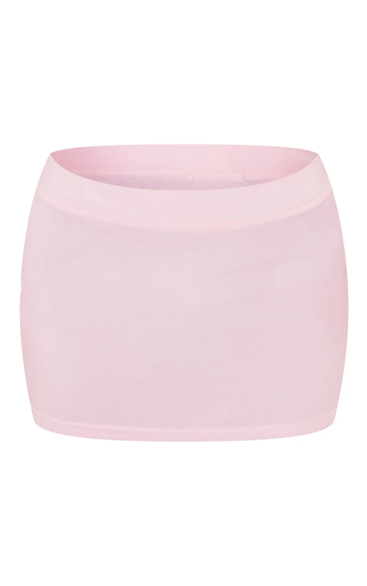 This mini skirt is at the top of our wishlist doll. Featuring a baby pink velour material with a micro mini length and a low rise design, it is perfect. Wear with the matching hoodie, a body chain and kicks for a fiercely feminine finish.