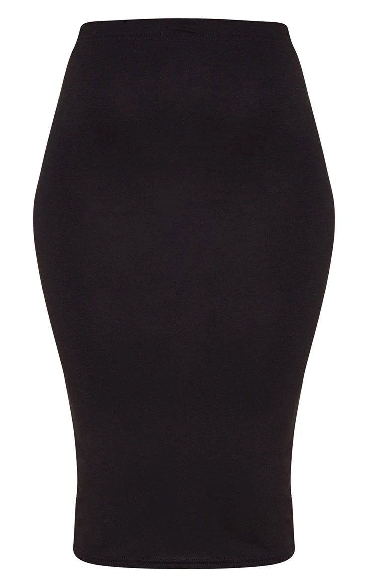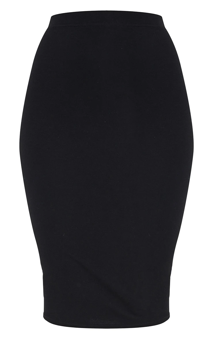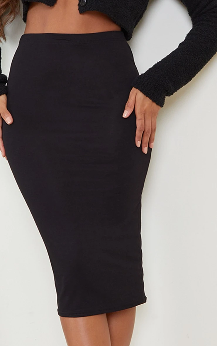 Add this versatile skirt to your weekend wardrobe doll. Featuring a black jersey material with figure-hugging fit and midi length, what’s not to love? Style this with a crop top and chunky kicks for an effortlessly chic vibe.