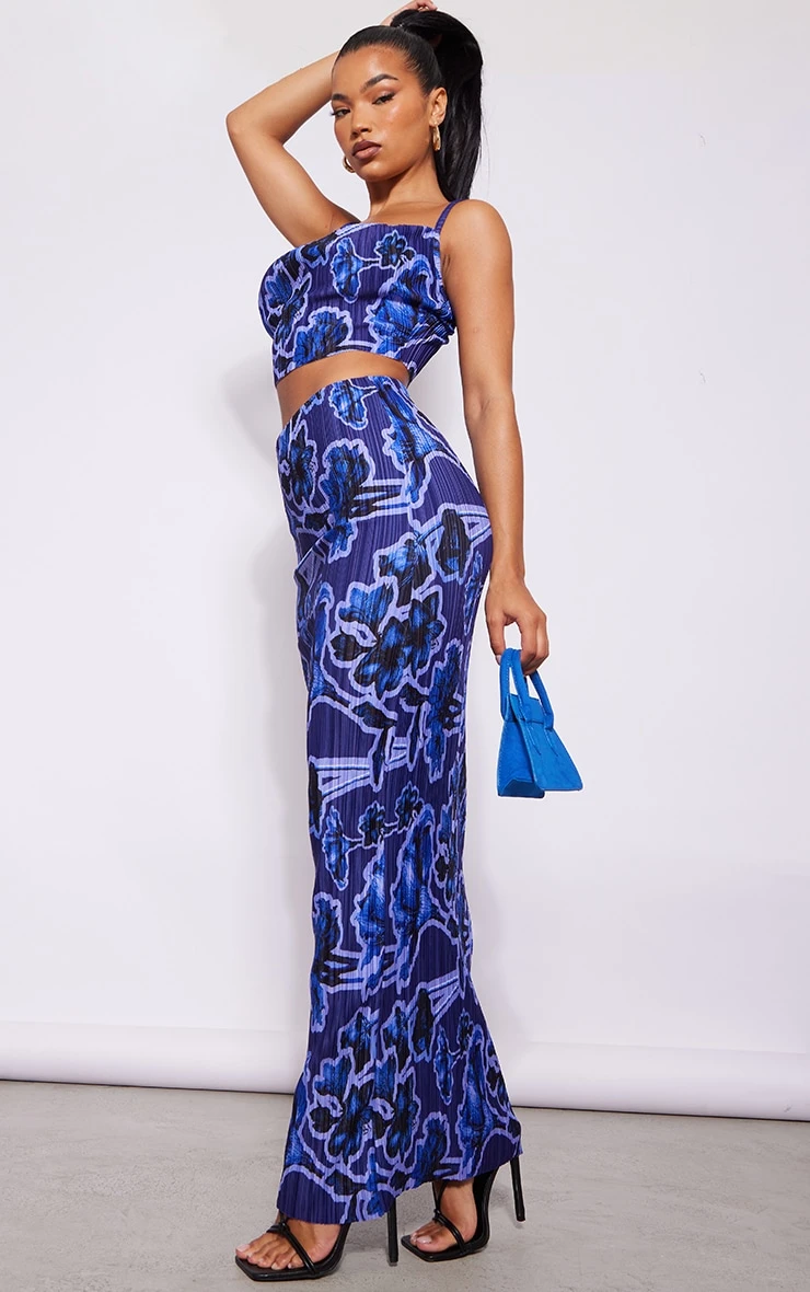 Make sure all eyes are on you in this unreal skirt. Featuring a blue printed plisse material with a maxi length and flattering fit, what’s not to love? Wear with the matching top and your highest heels to steal the look.
