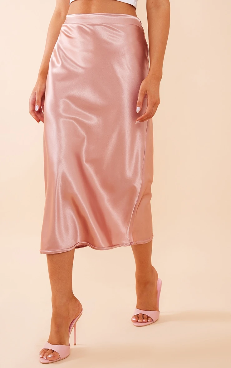 Add some dreamy hues to your weekend look with this dusty pink satin bias cut midi skirt. Made in a satin material along with a dusty pink hue, a bias cut design completed with a midi length, how could you resist? This midi skirt is here to have you looking totally on-trend. Pair with a white crop top, high heels and accessories for a next-level look.