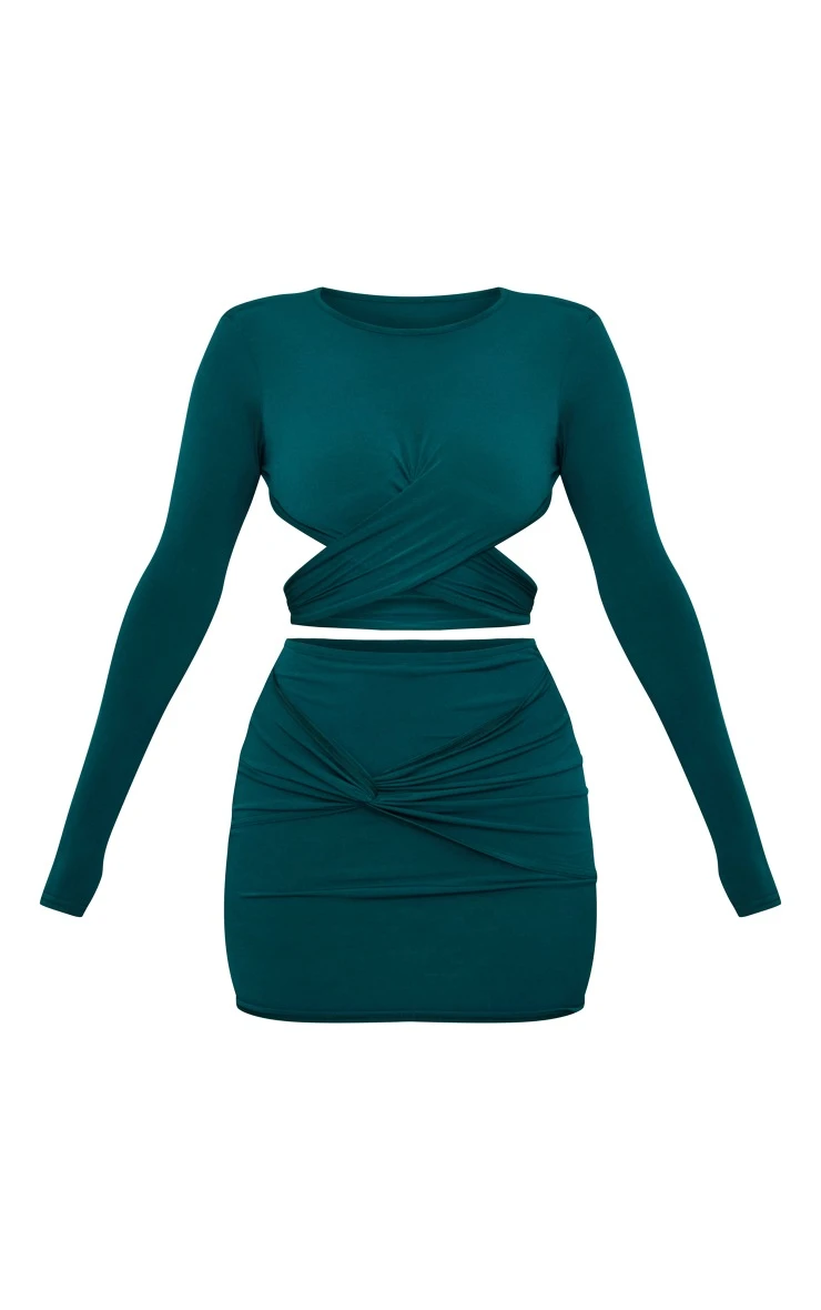Your what to wear dilemmas have finally been found with this green cross detail shoulder pad mini bodycon dress. This green women’s dress is everything you need to make heads turn for all the right reasons. Made from a green material with a shoulder pad design, cross detailing and a mini bodycon length, we seriously can’t get enough. Finish off this statement piece by adding a pair of trusty high heels and statement accessories for a look we can’t stop crushing on.