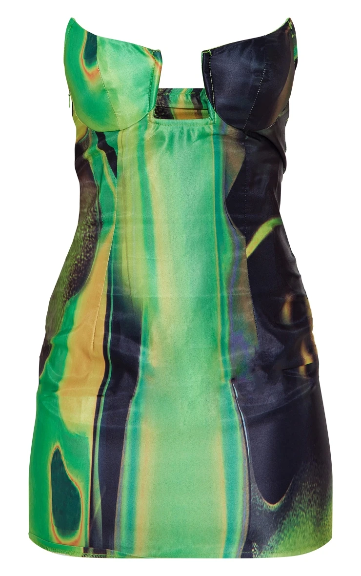 Get ready to make a bold statement with this green smoke print satin V bar bandeau bodycon dress. Brought to you in a satin material with a green smoke print hue along with a V bar design and a figure-flattering fit, this dress will leave you looking your best doll. Style this the right way and add your trusty high heels and chunky gold hoops for a glam finish.