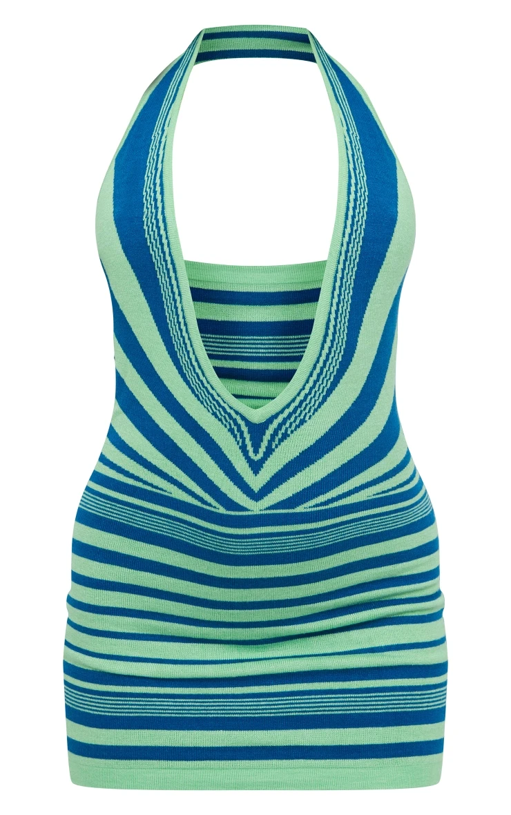 Get ready to be the topic of everyone’s conversation with this green two tone abstract stripe knit plunge dress. If you’re struggling to find a look that will turn heads then we have you covered with this women’s plunge dress. Brought to you in a green knit material with a two tone abstract stripe print design and a plunge neckline, how could you say no? Add the matching leg warmers, clear high heels and accessories for a look that we can’t stop crushing on.