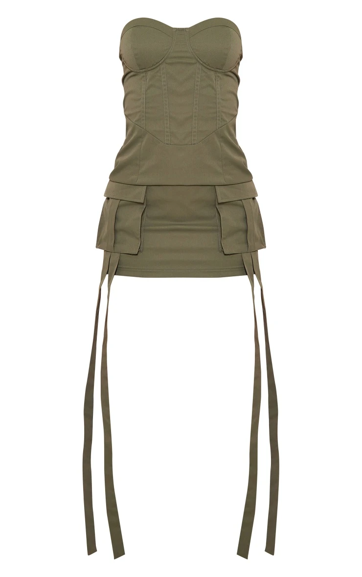 Nail new season trends with this khaki cargo pocket detail bandeau underwired bodycon dress. This statement piece is brought to you in a khaki material with pocket detailing, a bandeau style and a figure-hugging fit, how could you resist? It is the perfect addition to your weekend wardrobe doll. So what are you waiting for? Pair this effortlessly with knee-high stone boots and shoulder bag for a look that will secure all the likes.