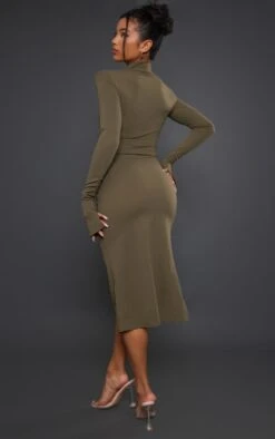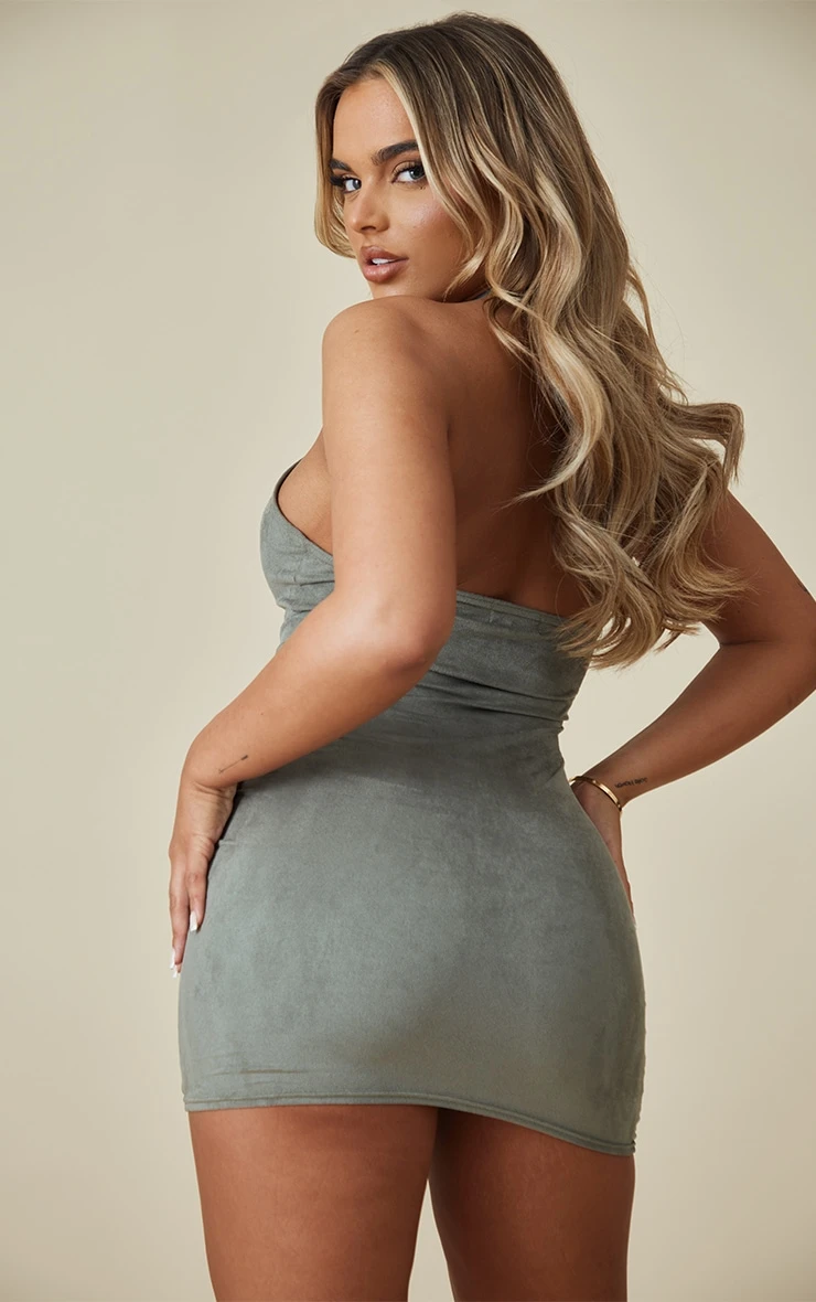 Make a statement this season with this khaki faux suede chain detail high neck bodycon dress. This unreal dress is made from a faux suede material for a luxe look we are loving. With a chain detail and a high neck design, this bodycon dress is perfect for those next upcoming occasions. Team with some clear heels and your fave accessories to finish off the look everyone is obsessing over.