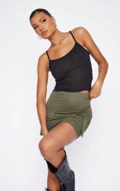 Nail all the major trends with this khaki jersey cargo pocket detail mini skirt. Whether you’re switching up your off-duty wardrobe or need a fresh weekend ‘fit, this mini skirt is calling your name. With a khaki jersey material, cargo pocket details and a mini length, how could you say no? Team with a basic crop top, western boots and shades for the ultimate off-duty combo that everyone will be jealous of.