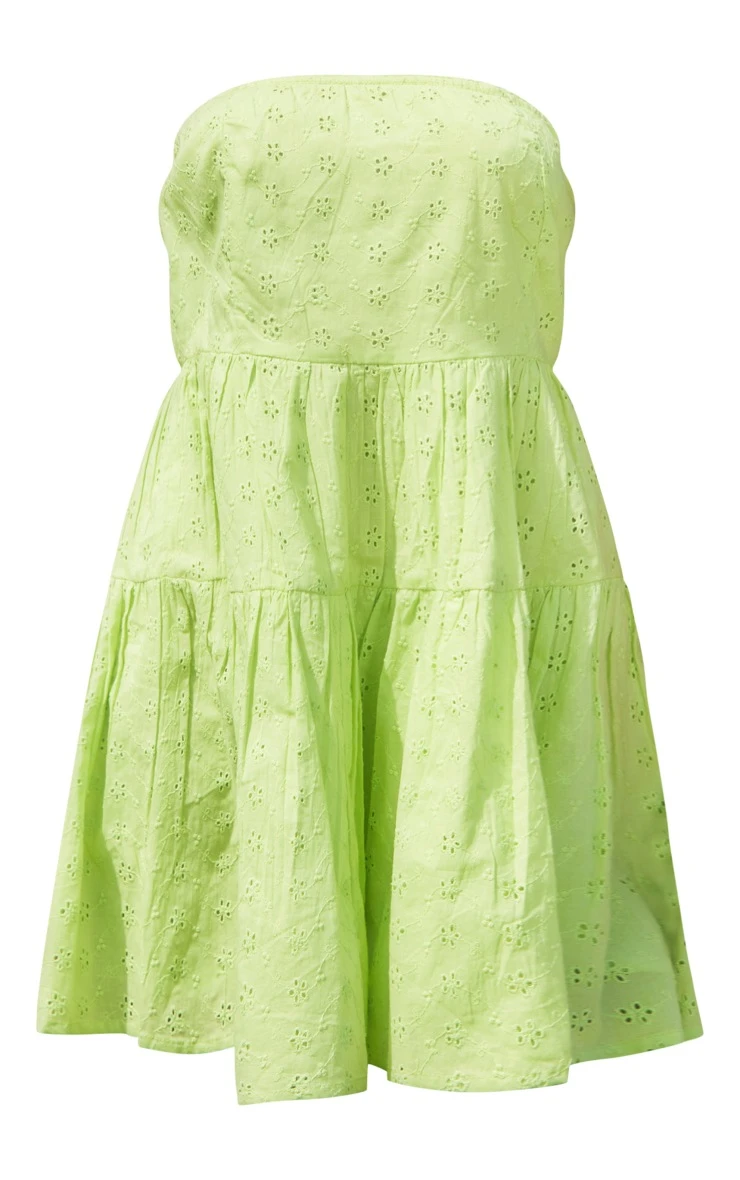 Add some dreamy hues into your new season wardrobe with this lime broderie tired bandeau shift dress. This shift dress is brought to you in a lime hue with broderie detailing, a tiered design and a bandeau style, how could you resist? This dress perfect for those summery days doll. Simply add sandals, a shoulder bag and accessories for a look like no other.