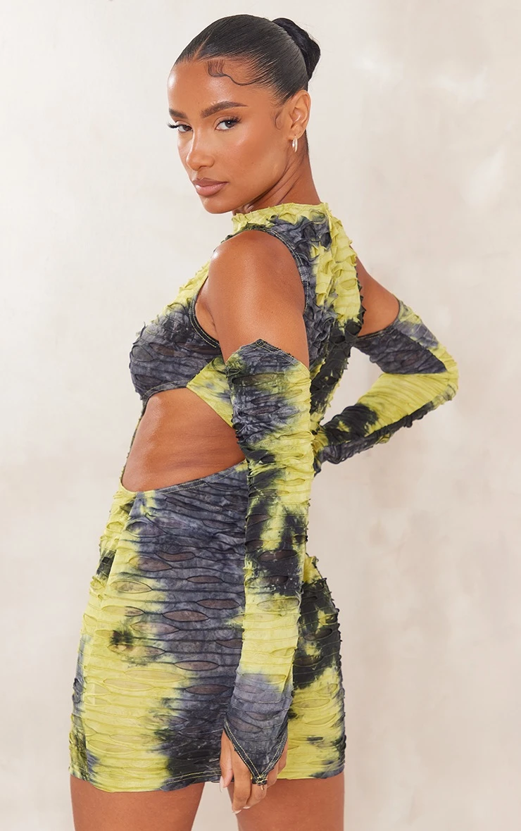 When the weekend calls for a little drama this multi distressed cut out sleeve detail bodycon dress, get ready to steal all the stares whatever the occasion doll. This dress is made with a multi hue distressed material with a cut out design and a bodycon style that is perfect for showing off your unreal shape. Pair this cut out dress with knee high heeled boots and gold hoop earrings for a look that no one will forget.