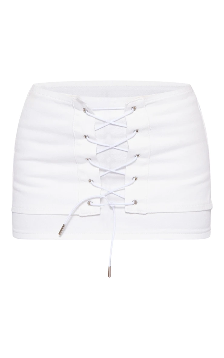 When the weekend calls for a little drama this off white lace front denim mini skirt is sure to be at the top of your hit list. It is made using an off white denim material with a lace front design and a mini length, how could you say no? Pair this mini skirt with the matching top, knee high heeled boots and your fave accessories for a look that will have you at the centre of attention.