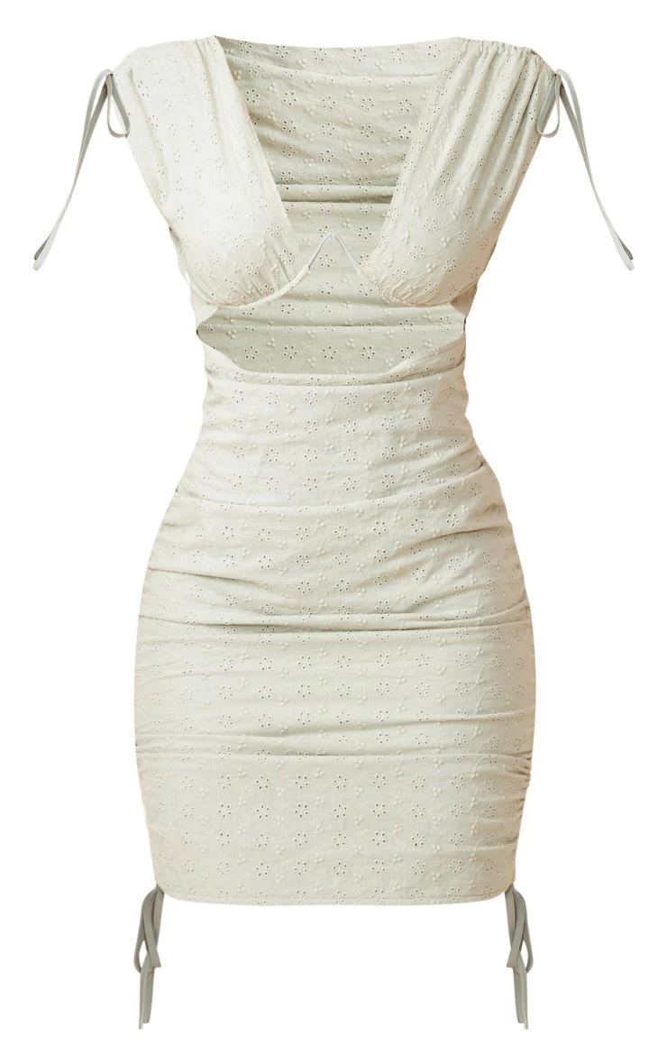 The new season is calling doll and this sage broderie anglaise plunge cut-out ruched bodycon dress is the answer to all your what-to-wear dilemmas. Made from a sage broderie anglaise material with a plunging neckline, a cut-out design, and ruched detailing, how could you say no? This bodycon dress is perfect for any upcoming summer plans or even that vacay in the diary. Style with slides, gold accessories and a mini bag for a dreamy look that everyone will want.
