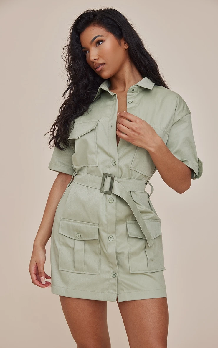 Give your wardrobe a seriously chic update with this sage cargo shirt sleeve belted shirt dress. This dress is brought to you in a sage hue and a cargo material for a look with an edge. With a belted detail, you will be feeling extra confident in this shirt dress doll. Team with some cowboy boots to make a statement this season.