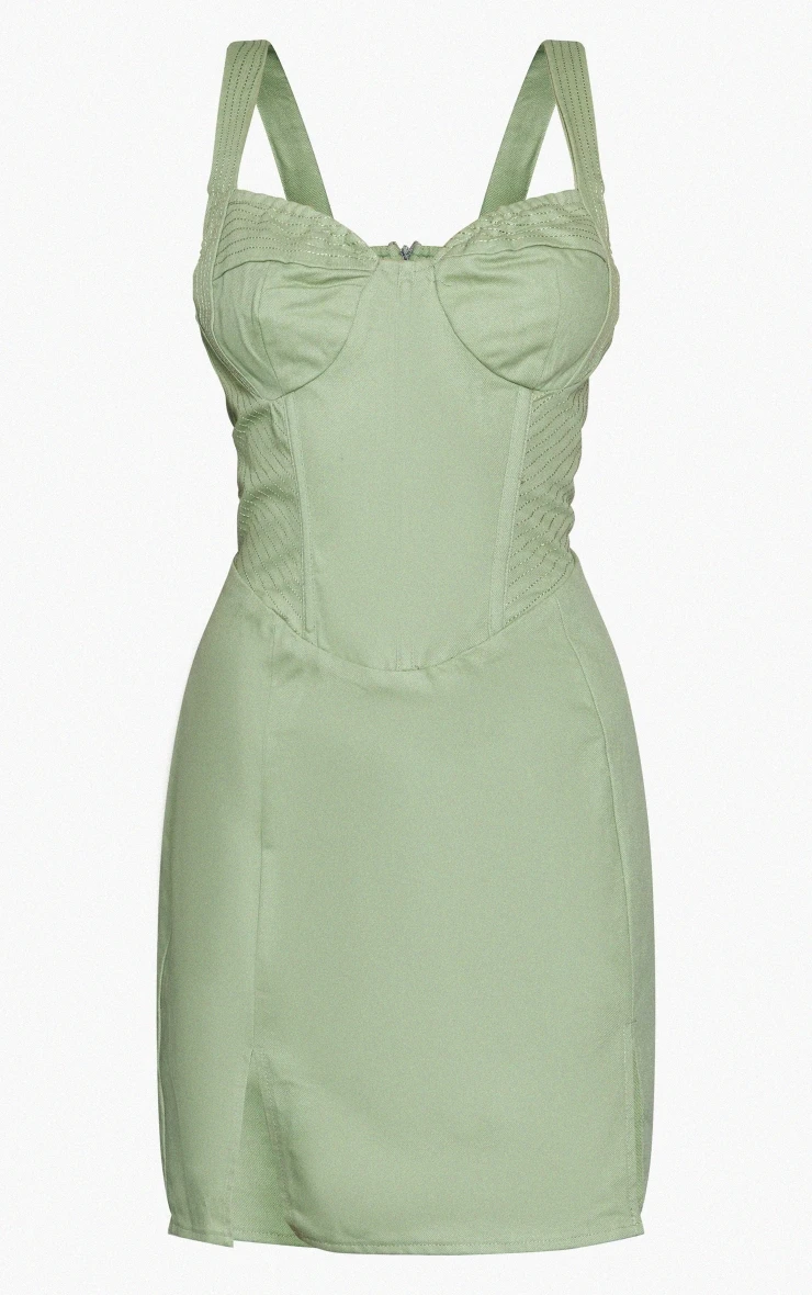 Found some last-minute weekend plans doll and need an unreal ‘fit? Then we have you covered with this styling staple, a sage green cargo contrast stitch corset detail bodycon dress. With a sage green material with stich detailing, a corset design and a cargo style, we’re obsessed. Work your styling techniques and add a your clear high heels and statement gold accessories for a weekend-worthy finish that will gain all the likes.