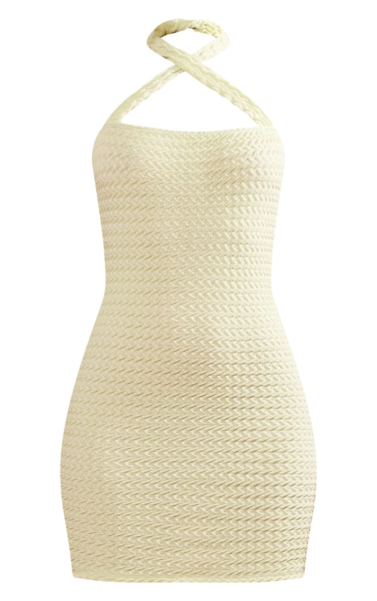 Take the stress out of weekend styling with this sage green textured halter strap bodycon dress. Brought to you in a sage green hue textured material with a halter neck design and a figure-flattering fit, how can you not fall in love this dress? Style with clear strap heels and gold accessories for a look that is sure to have all eyes on you on your next night out with the dolls.