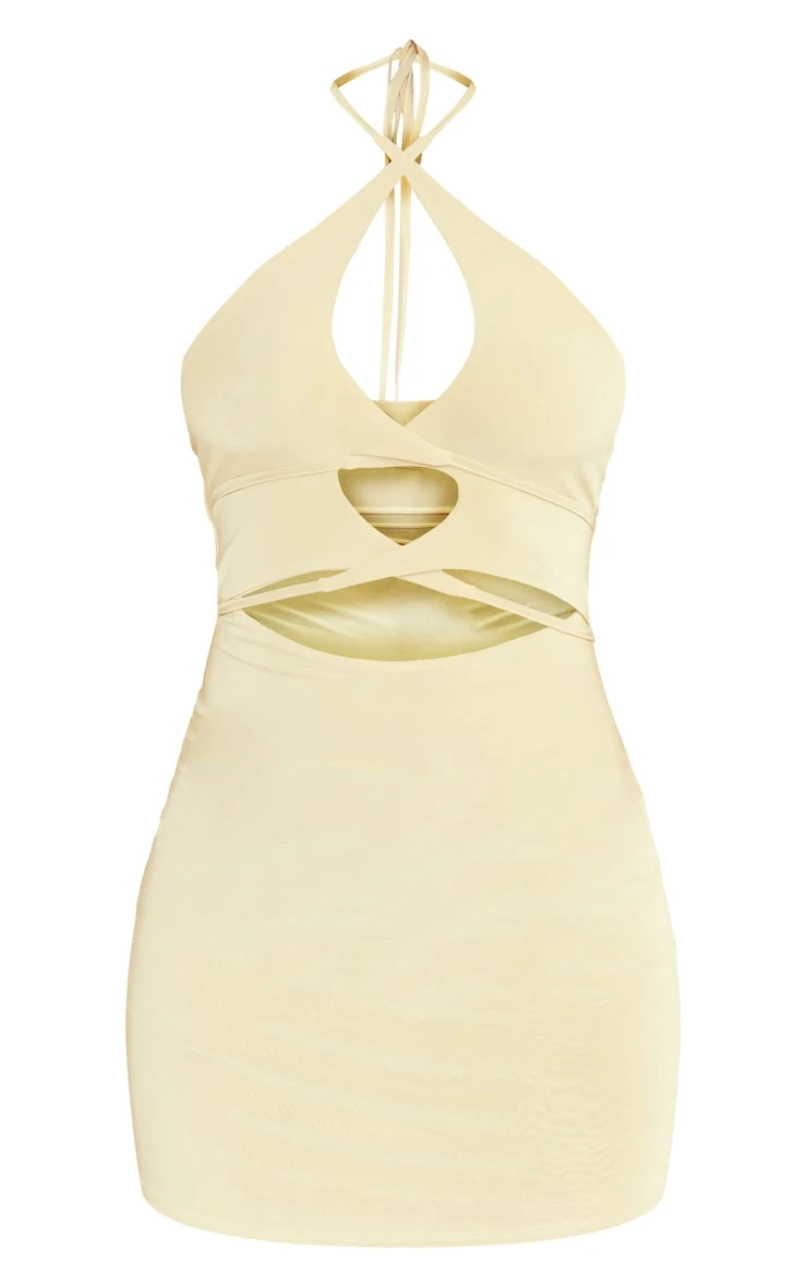 Get ready for the weekend with this sage slinky cross strap detail halter bodycon dress. Its sage slinky material is super flattering and its cross strap detail adds all the chic vibes. This bodycon dress also features a halter neckline which shows off your unreal figure. Simply add clear heels, gold accessories and a mini bag for a vibe that won’t go unnoticed.