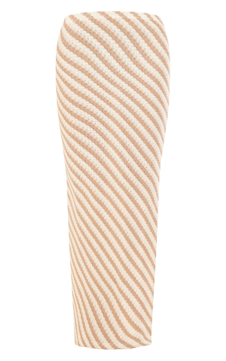 Get that effortlessly chic look on-point with this stone striped textured flippy maxi skirt. Brought to you in a stone hue textured material with a striped design and a figure-worshipping maxi fit, what more could you need? Style this maxi skirt with a bandeau top, tie up heels and a tote bag for a look that is sure to have eyes on you for all the right reasons.