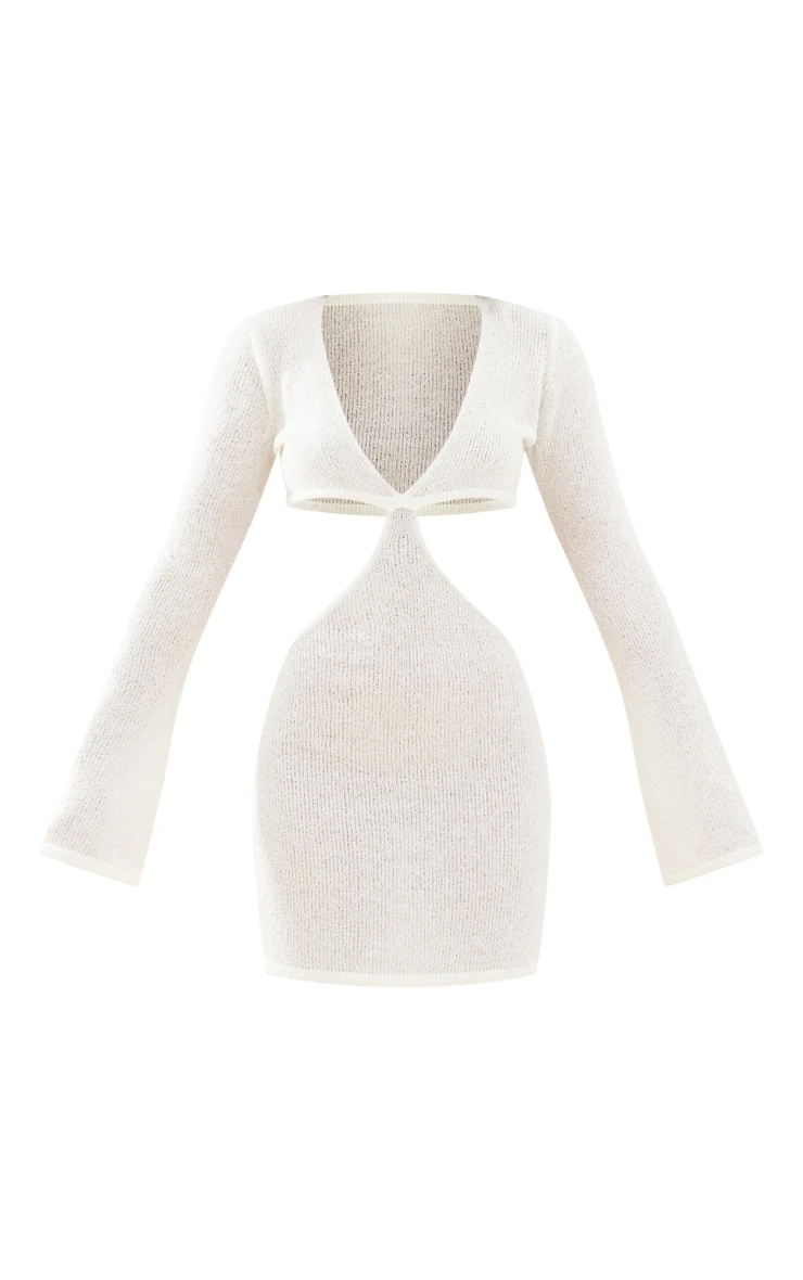 We are obsessing over this white bobble knit long sleeve sleeve cut out mini dress for your new season wardrobe. This dress is brought to you in a white knit material with a bobble design for a luxe vibe we are loving this season. With a cut out detail, this midaxi dress is perfect for those upcoming occasions. Team with some platform sandals and your go-to bag to elevate the look even further.