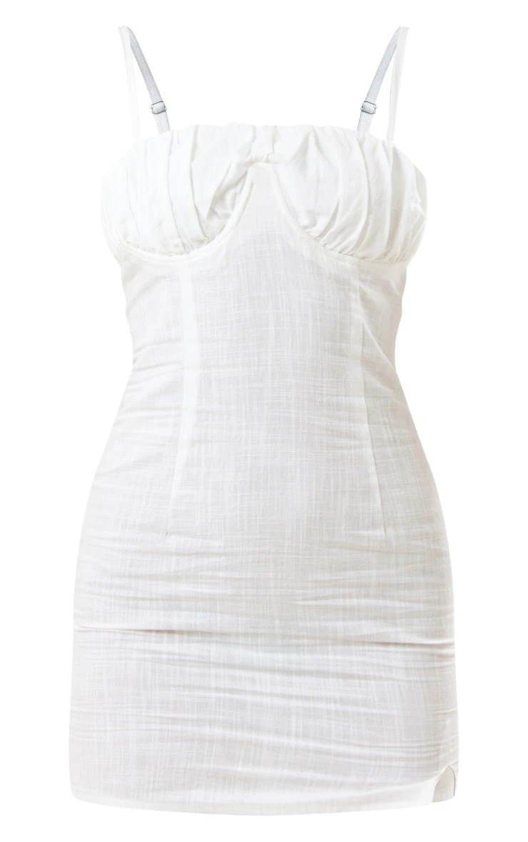 Your new season wardrobe wouldn’t be complete without this white linen look underwired bust detail strappy bodycon dress, you’re sure to be channelling all the glam vibes into your weekend look and beyond. This bodycon dress includes a white linen look material with an underwired bust design and thin straps, what’s not to love? Style this dreamy bodycon dress with your fave heels and simple accessories for a look that can’t be matched.