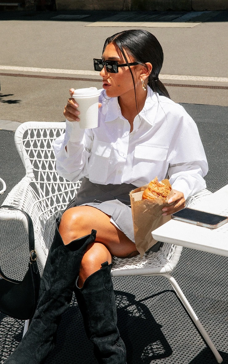 This white long-sleeve pocket detail shirt dress is an ultimate wardrobe staple piece this season. With a white material with long sleeves, button fastenings and pockets, what more could you ask for? This shirt dress is the perfect styling piece for both the weekend and everyday looks doll. Team this with knee-high boots and a gilet to complete the perfect off-duty look.