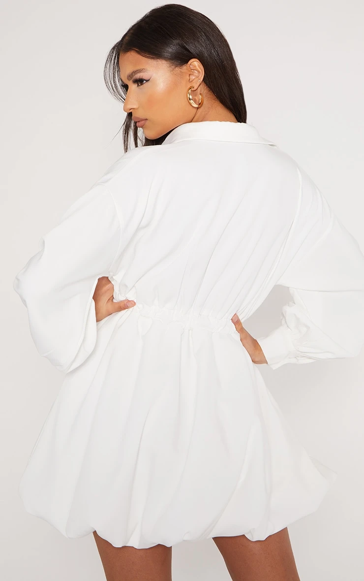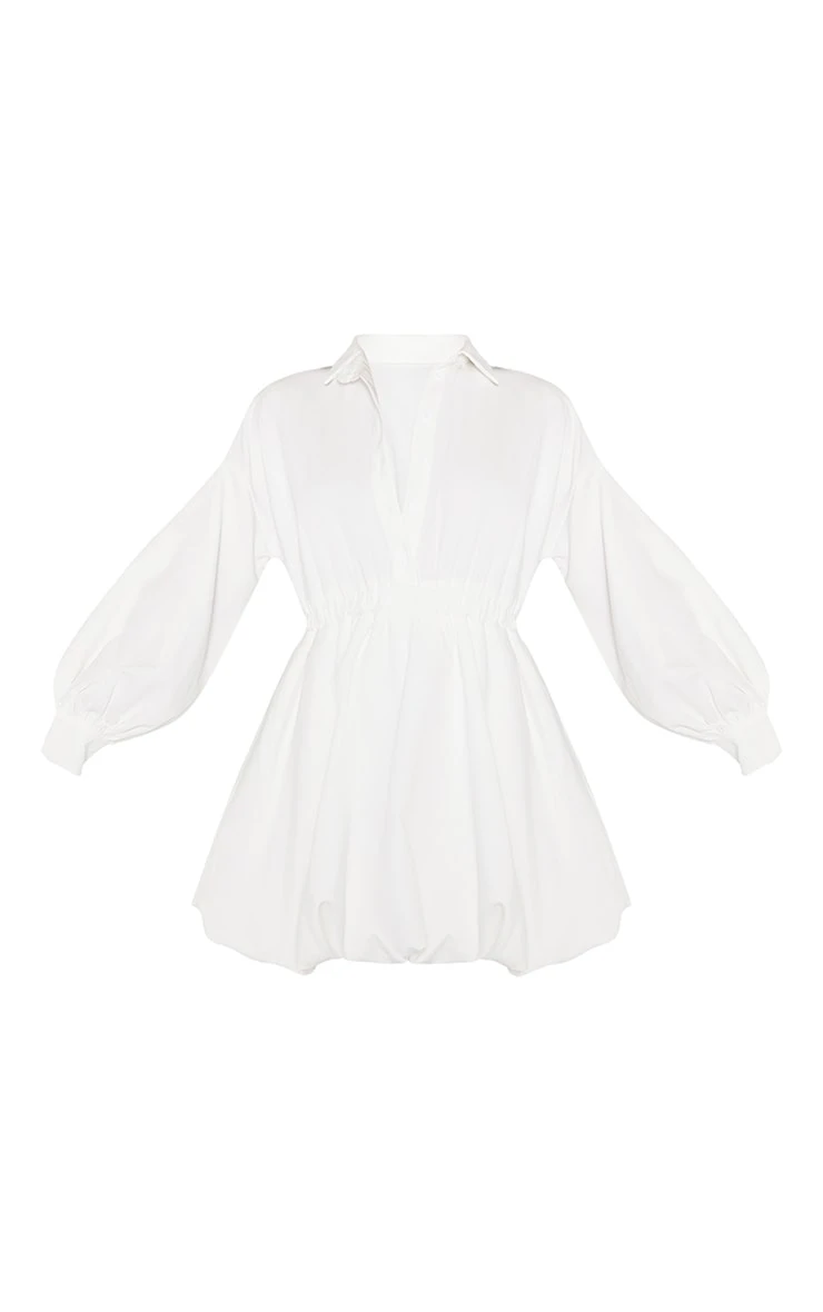 Be the ultimate show stopper in this shirt dress. Featuring a white fabric with a puffball hem and balloon sleeves, just add mules and a shoulder bag for a look we’re obsessing over.
