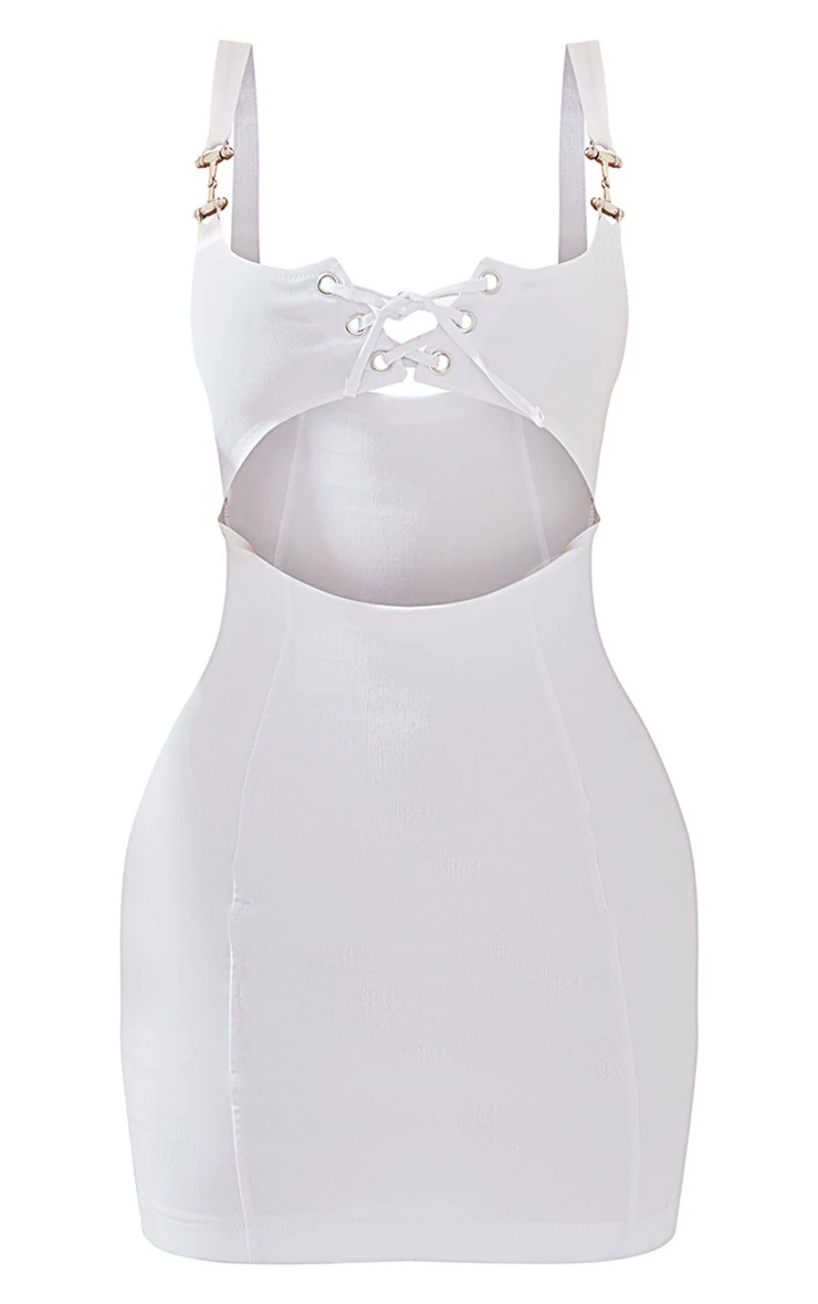 Prepare to steal all the stares in this white stretch woven lace up trim detail bodycon dress, it is the perfect versatile piece to take your look effortlessly from date night to your next big event. It features a white stretch woven material with a lace up trim design and a figure-worshipping fit, we’re obsessed. Style this women’s bodycon dress with your fave heels and simple accessories for a flawless finish.