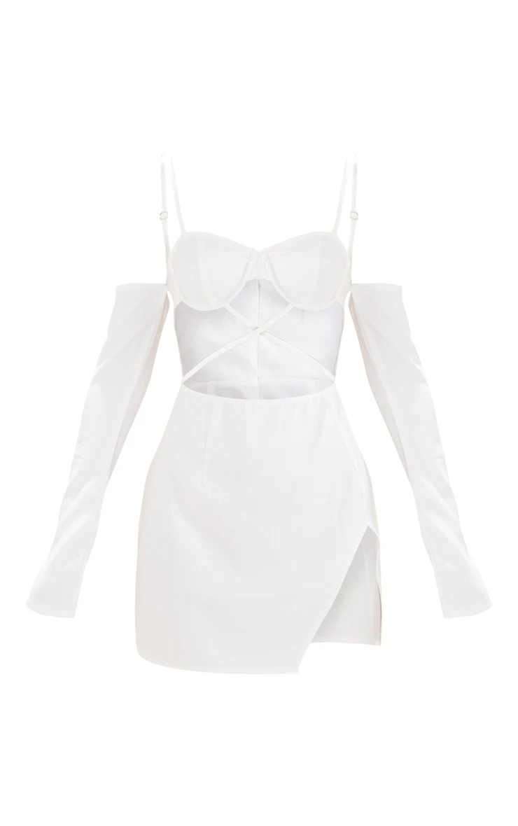 Prepare to steal all the stares in this white woven underwired cup cross waist bodycon dress, whatever your plans you’re sure to be in love. This dress includes a white woven material with a cross waist design and an underwired cup style, how could you resist? Wear with clear slip-on heels and gold accessories for a look that is sure to show off your glow.